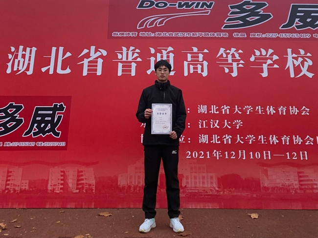 在12月12日结束的湖北省大学生田径运动会中,建筑工程学院学生胡球在800米赛项中夺得第四名的成绩。