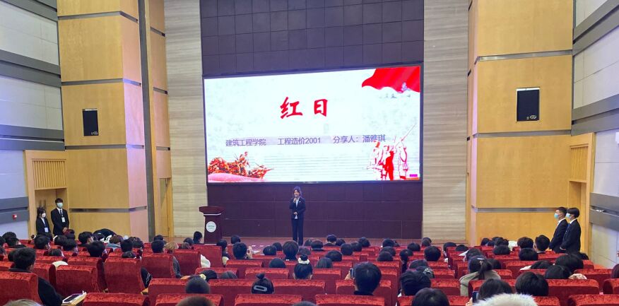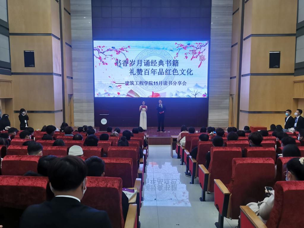 为营造浓郁的校园文化氛围,坚定青年团员永远跟党走的政治信念,激发学生的爱国热情,11月24日晚,建工学院“书香岁月诵经典书籍,礼赞百年品红色文化”读书分享活动在图书馆一号报告厅成功举办。建工学院党总支书记别菊珍、副院长雷霆、学工科长李襄静、团总支书记杨群、实训中心主任安雪等出席活动。
